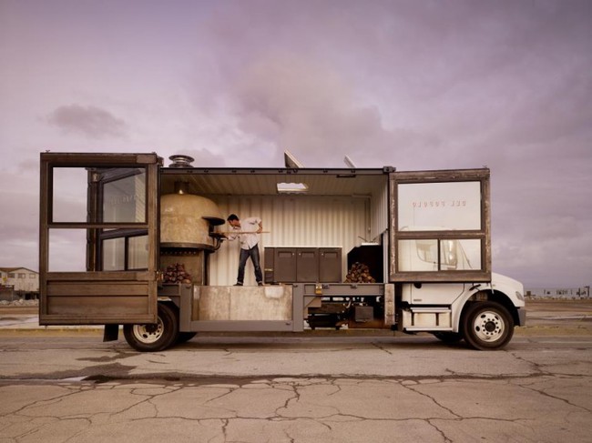 Este no siempre fue en un camión, de hecho en un principio fue tan solo un contenedor. Su creador le añadió cuatro ruedas, una cocina y dos grandes puertas de cristal para abrir al público. Y ¡voilà! Tienes una pizzería móvil para ofrecer tu comida tan lejos como las carreteras te permitan, lugar que el propietario va avisando a través de Twitter.