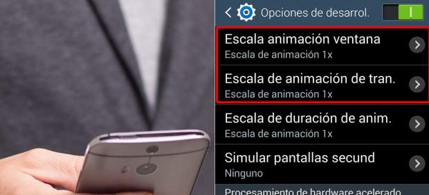 Bastará con activar las opciones de desarrollador y desactivar dos pestañas sobre animaciones y transiciones de ventanas.