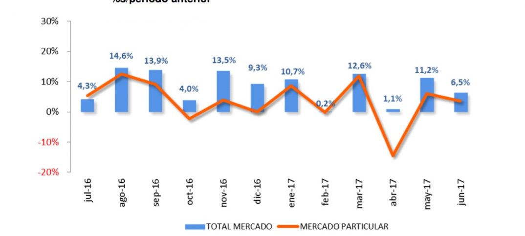 El estancamiento de los particulares se observa desde el último trimestre de 2016 (coincidiendo con el fin del Plan PIVE). Ni siquiera junio, que es tradicionalmente un buen mes de ventas, con clientes que buscan estrenar el coche en sus desplazamientos veraniegos, ha impulsado el mercado. Son las empresas, y el empuje de las automatriculaciones (el 25% de las ventas se hizo en los dos últimos días de mes, como apuntan desde Faconauto), quienes han empujado el mercado… y también la oferta de coches de KM0, una oportunidad para los clientes de adquirir un coche mucho más barato… pero también un peligro para las concesiones, que deben aumentar el sotck. La demanda ficticia que generaba el PIVE se ha sustituido ahora por otra “burbuja que no se corresponde con la demanda real”.
